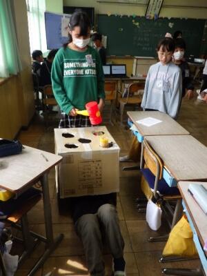 3・4年生 お楽しみ会 投稿日時 : 2024/03/19 編集長 カテゴリ: 3年生の教室からにぎやかな声が聞こえてきました。 学期末のお楽しみ会です。 箱の中身当てゲームですね。 4年生の教室でもお楽しみ会をやっていました。 モグラたたきゲーム。 こんなからくりでした。