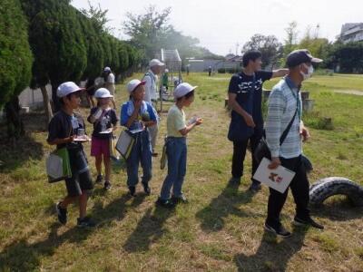 4年生 自然観察 1 投稿日時 : 2023/06/29 編集長 カテゴリ: 埼玉県生態系保護協会の方をお招きし、校庭の自然観察を行いました。 元気山には虫も生息しています。 バッタですね。 カエルもいました。 図鑑も必要に応じて活用します。