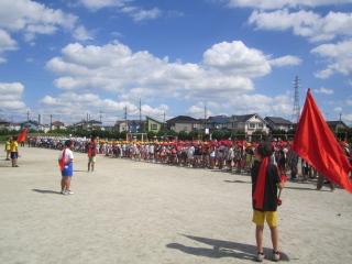 土曜日の天気が気になる中、子供たちは応援練習です。