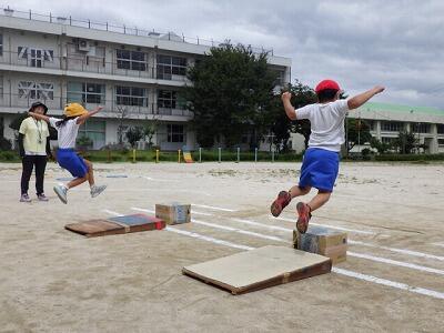 1年生 体育 投稿日時 : 2024/09/04 編集長 カテゴリ: 踏切板を使ってジャンプします。 到達したラインによって獲得したポイントを競います。 だんだんコツがつかめてきました。 タイミングを合わせて遠くまで跳べるようになりました。