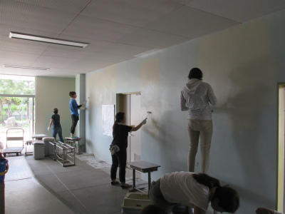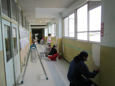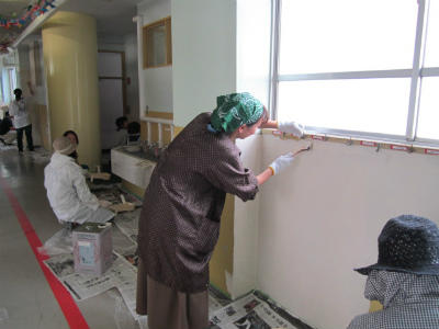 お父さんやお母さんの上手なペンキ塗りの様子です。