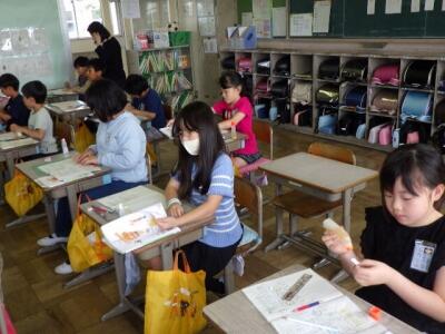 3年生の教室からは、田植えの終わった田んぼが見えます。