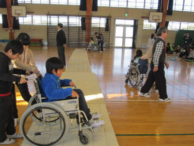 4年の車椅子体験学習です。市の社会福祉協議会の方からお話を聞きます。