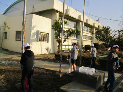 そうした中でも、6年生の朝ボランティアは、活動しています(3旗掲揚)。校舎内では、掃除をしています。