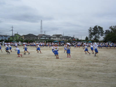 午前の競技② 投稿日時 : 2018/09/22 豊野小 カテゴリ: 可愛い低学年・ダンスです。来年入学する新入児レース全校で行う「大玉送り」のスタートです。順調に大玉を送っています。この後、予定通り13:05から、午後の競技が始まります。はじめは、演奏・バトンクラブの発表です。