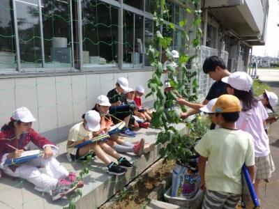 4年生 理科 投稿日時 : 2023/07/03 編集長 カテゴリ: ヘチマの観察です。 午前10時の時点で、すでに気温は29℃です。 つるや葉などをよく見てスケッチします。 太陽の光を浴びてぐんぐん大きくなります。