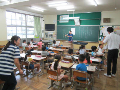 夏の暑さに負けず、勉強にがんばる低学年の「サマースクール」初日です。