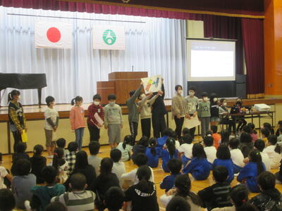 全校朝会(12月) 投稿日時 : 2021/12/01 豊野小学校管理者 カテゴリ: 12月の全校朝会です。 校長先生から大谷翔平選手と渋沢栄一のお話を通して、人として大切なことを教えていただきました。 給食委員会のみなさんから、フードロスをなくすためのお話をしてもらいました。