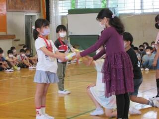 1年生をむかえる会 投稿日時 : 2022/04/27 編集長 カテゴリ: 1年生をむかえる会がありました。各学年の紹介や 2年生からあさがおのたね、3年生から校歌の歌詞カードが プレゼントされました。1年生、入学おめでとう! 代表委員さん、司会進行をありがとう!