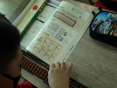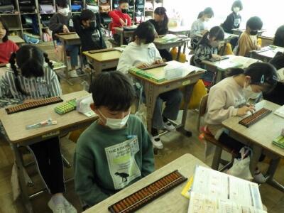 3年生 そろばん 投稿日時 : 2024/03/13 編集長 カテゴリ: 算数の授業でそろばんの使い方を学びます。 数を入れるときには人差し指と親指を使います。 先生が大きなそろばんで指の動きを説明します。 やってみましょう。 小さな玉を正確に動かすのは難しいですね。