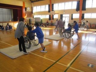 4年・車椅子体験 投稿日時 : 2019/12/03 編集長 カテゴリ: 4年生が、今年も福祉学習で、車椅子体験を行いました。 補助の仕方の説明を聞き、早速・・・・。 優しく。 マットを段差に見立てて・・・、 補助する子も、乗る子も・・・、 一生懸命です。