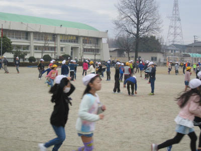 校庭は、子供たちでいっぱい 投稿日時 : 2018/01/09 豊野小 カテゴリ: 3学期が始まりました。今まで静かだった校庭に子供たちの元気な姿が・・・。まずは走る前に、準備運動です。走り出します。走る子やなわとびをする子で、校庭に子供たちがあふれてきました。どんどん走る。どんどん跳ぶ。3学期も元気に過ごしましょう。