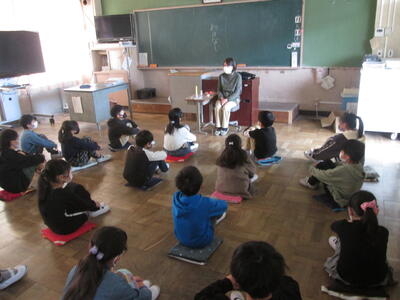 今朝は春日部おはなし会の皆さんによる読み聞かせがありました。