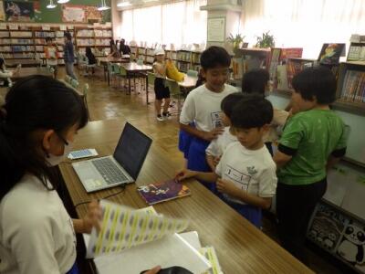 バーコード処理をする図書委員さんは大忙しです。