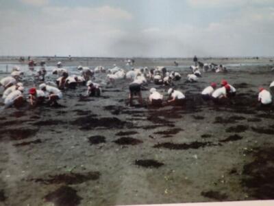 こちらは3・4年生の遠足。千葉県稲毛への潮干狩りです。(昭和43年)
