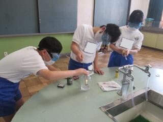 ろうそくを燃やし、ビンの中の二酸化炭素の割合を調べました。