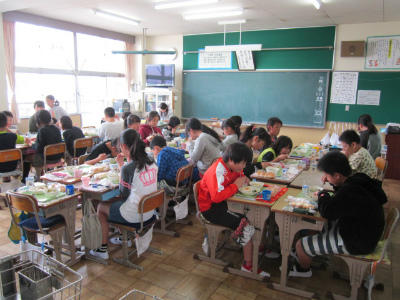この後、6年生は、1年生の給食の片付けボランティアに。どうもありがとう。