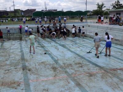 プールそうじ 投稿日時 : 2024/06/04 編集長 カテゴリ: 天気にも恵まれ、雨で延期していたプールそうじを行いました。 プールそうじは、毎年この時期に6年生と5年生が行っています。 だんだんきれいになってきました。 プールの周りのそうじや草とりも行いました。