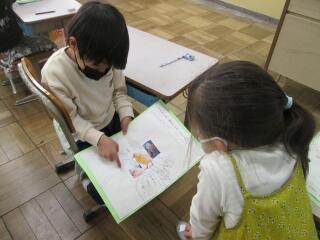 絵や写真を見せながら、見つけたことを友達に伝えました。