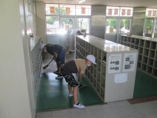 掃除の時間の様子です。黙々と学校をきれいにしています。