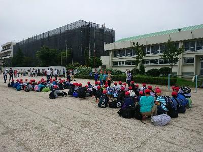 終業式の後、林間学校に行く5年生と引率の先生方との対面です。