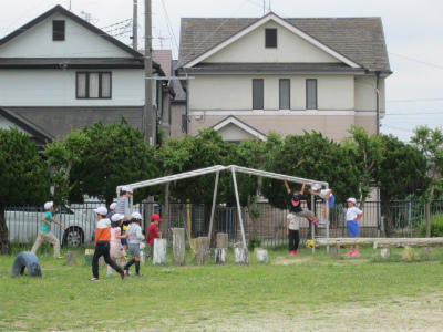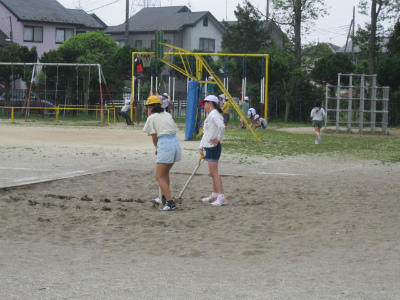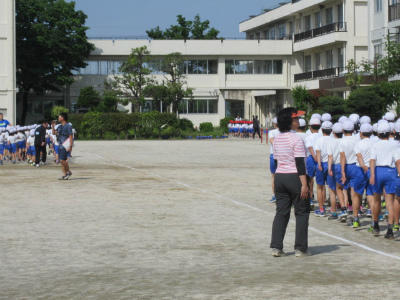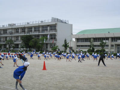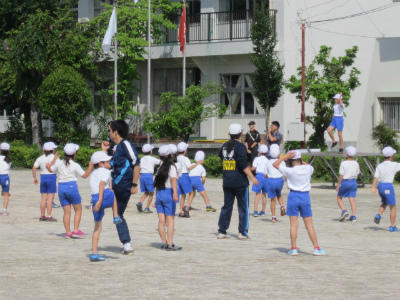 今日から一緒に勉強や運動をする教育実習生との鬼ごっこは、汗びっしょり。