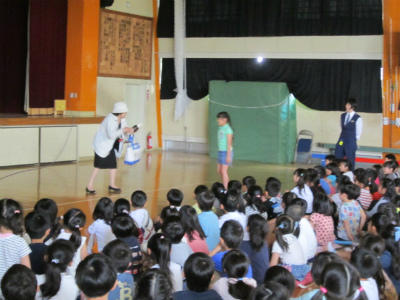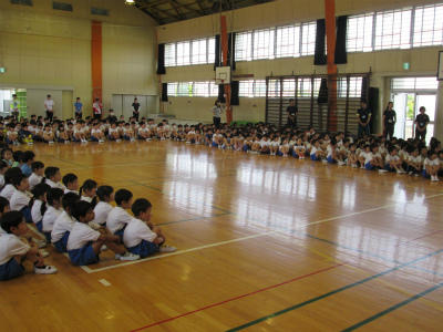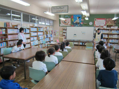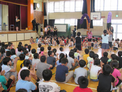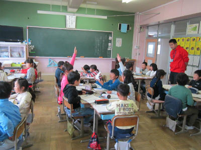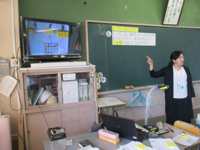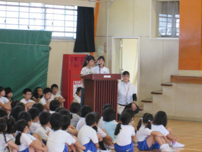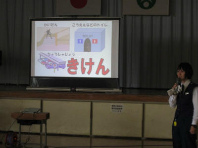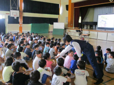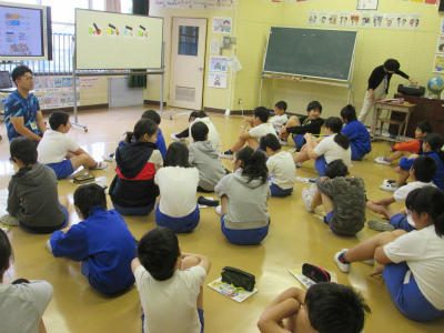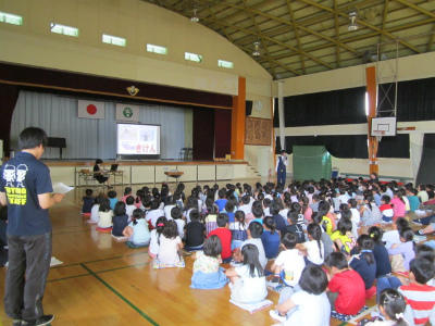 時折クイズを入れながらの話に、子供たちは、スクリーンに見入っていました。