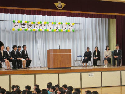 離任式の後、それぞれの教室に分かれて、お別れの会を行いました。
