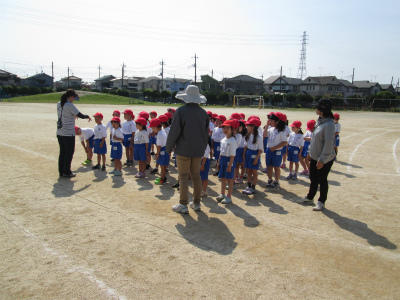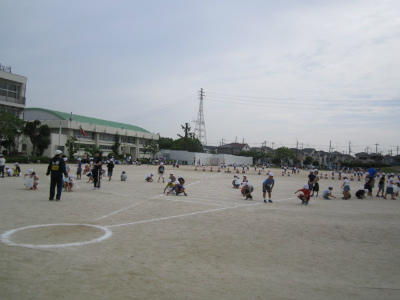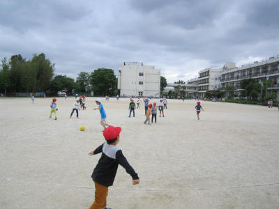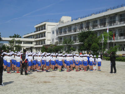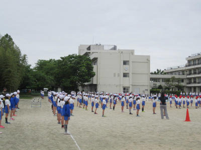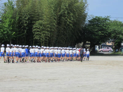 連休の狭間の朝ですが、子供たちは、元気に校庭へ。
