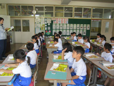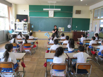 養護実習生の研究授業です。6月4日の「むし歯」予防にちなんで、