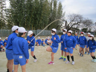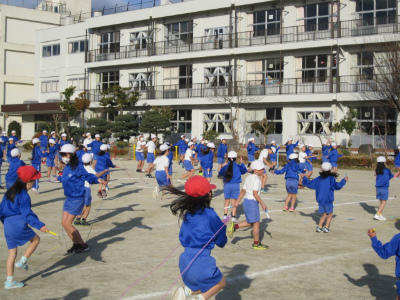 校庭は、ながなわ練習をはじめ、たんなわ、マラソンと子供たちがたくさんいます。