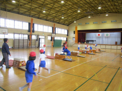 今朝は、どんよりした空模様でしたが、子供たちは元気いっぱいになわとびに取り組みました。