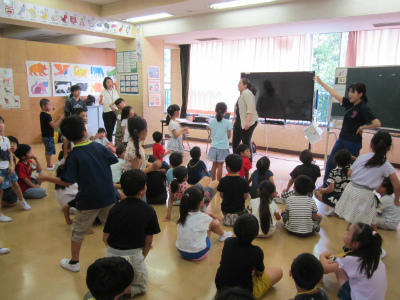 今月の生活目標について、子供たちと教師の寸劇です。上手でした。