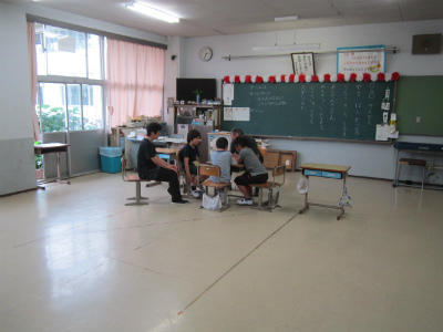 避難訓練後、朝の会を行っているたんぽぽ学級