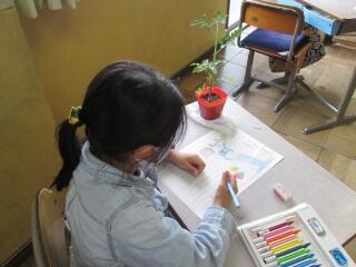 みんなで学校を探検し、見つけたものを絵に描いて発表しました。