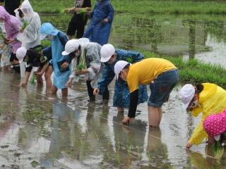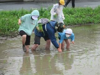 赤沼地区の田んぼで「赤米」の田植えを行いました。