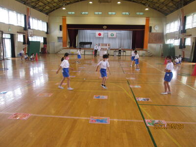 コロナ禍なので、大型かるたで体育館で行いました。春日部の歴史もいろいろ学べました。