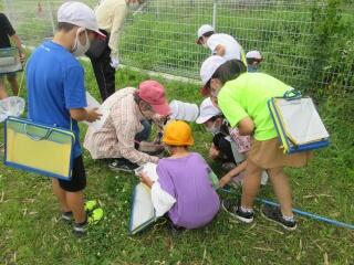 バッタ、チョウ、てんとう虫など、たくさんの生きものと出会いました。