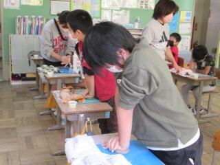 いい匂いに誘われて家庭科室に向かうと、5年生の調理実習中。