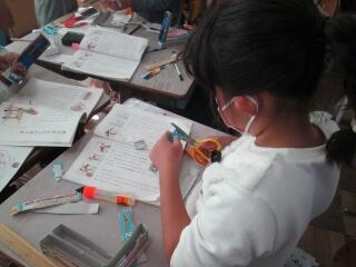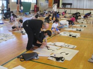3年生から太い筆を使った書きぞめの学習が始まります。