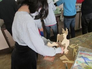 焼き物粘土を丸めたり、平らにしたりしながらシーサーを作りました。