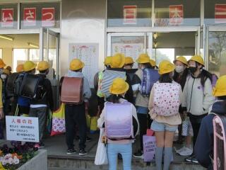 1年生は、防災頭巾の使い方や安全な避難の仕方を学習していました。