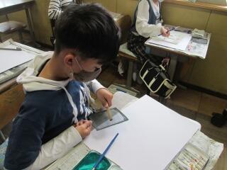いろいろな道具を使い、画用紙に思い思いに色を載せていきました。
