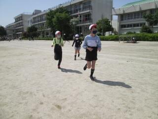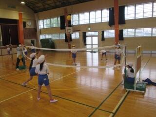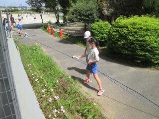 6年生はミニハードルをリズムよく走って越える練習をしていました。