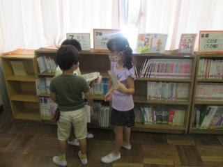 図書支援員の先生に図書室の使い方を教えてもらいました。