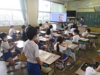 当日劇に出演する4年生が、歌や動きなどを練習しました。