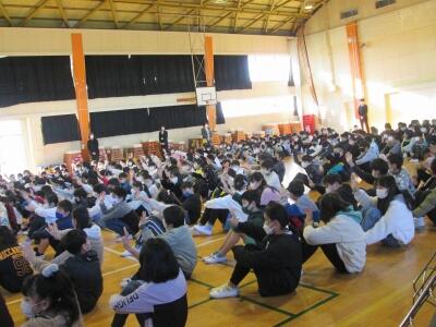 令和4年度、昨年度の3学期始業式も体育館で行いました。