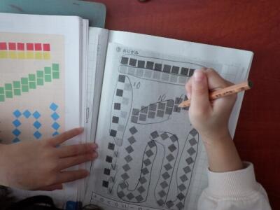 指でなぞったり、鉛筆でなぞったりしながらマスターしていきます。