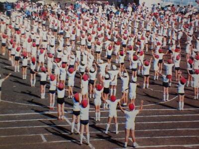 この年まで男子の体育着は白い短パン、女子はブルマーでした。