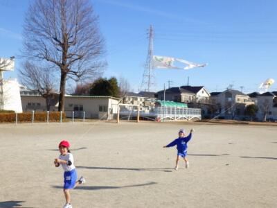 ぽかぽかした陽気に誘われて、たくさんの子どもたちが校庭に出てきました。